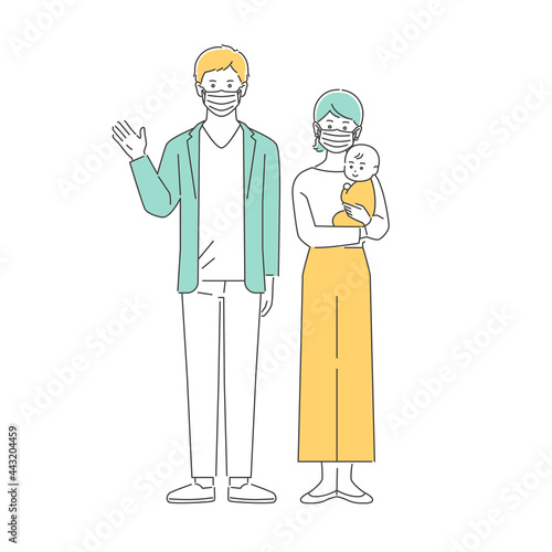 mask, couple, young, sweet, family, family, people, children, smile, happy, lifestyle, 30s, illustration, vector, couple, front, casual, chum, man, woman, baby, japanese, baby, father, mother, father, mother, father, mother, father, mother