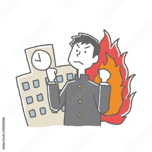 hustle, study, passed, aim, hustle, flames, uniform, people, japanese, student, training, fire, burning, fire, school, student, solemn, illustration, vector, hot, heat, boy, man, boy, man, fire