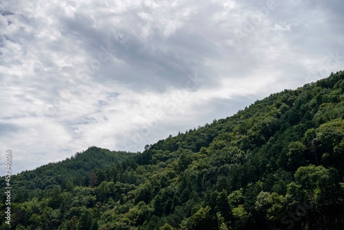 expressway, landscape, cloud, nature, wood, plant, construction, fence, forest, mountain, white, green, blue