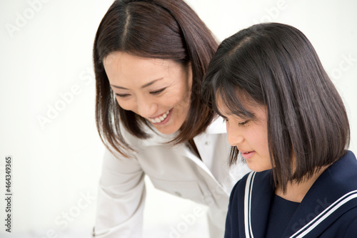 japanese, december, lifestyle, profile, indoor, school, student, classroom, 30s, youth, school, girl, woman, smile, waist up, people, man, uniform, teacher, adult, junior high, cuddle, two people, student, 2012