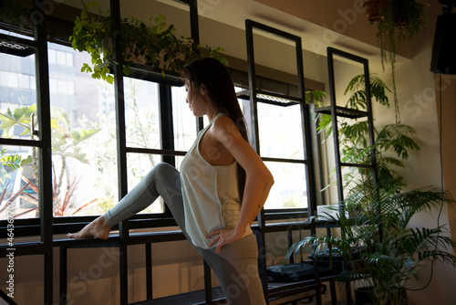 japanese, august, instructor, studio, stretching, training, powerful, fitness, yoga, indoor, healthful, black hair, woman, people