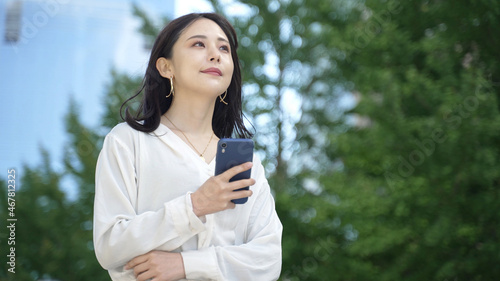 people, woman, smartphone, mobile, cyberspace, spend, communication, technology, mobile phone, smartphone, seek, look up, open air, open air, trip, green, nature, park, outdoors, casual, lifestyle, relax, alone, young, clean, beauty, japanese, asian, chinese