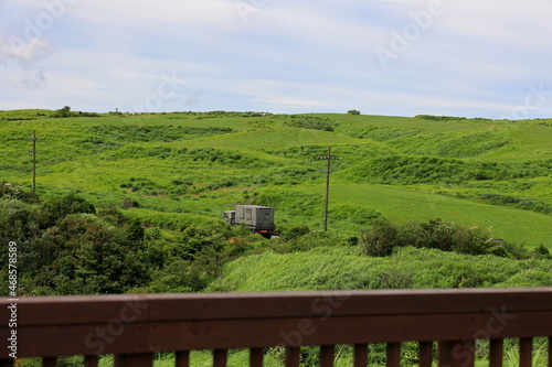 aso, volcano, mountain, caldera, kyushu, landscape, field, sky, grass, green, nature, wood, summer, meadow, countryside, agriculture, spring, rural, blue, cloud, farm, country, hill, plant, panorama, house, sunny, view