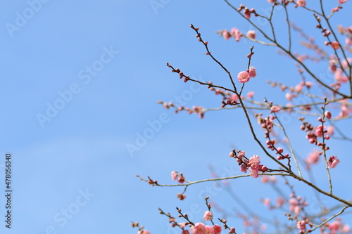 ピンクの梅と爽やかな青空