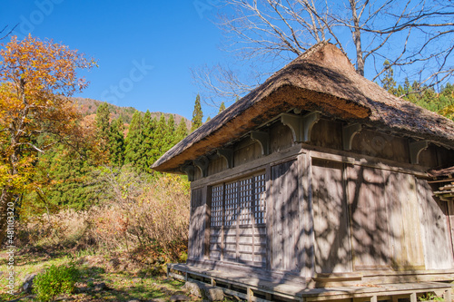 shrine, rural, plateau, mountain, forest, yellow, green, shiny, sparkling, shadow, silhouette, blue skies, sky, view, lovely, clean, light, vivid, november, fall, nature, landscape