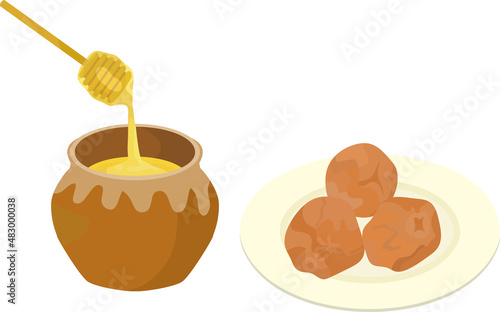 bottle, dish, foodstuff, illustration, vector, honey, honey, food, dish, food