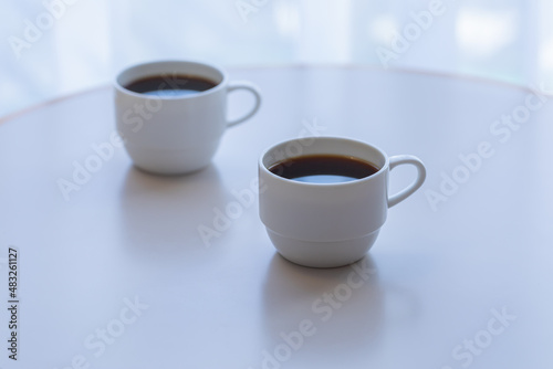 coffee, coffee cup, saucer, morning, warm, drink, white, black, black coffee, drape, light, relax, hotel, drink, break, perfume, bean, delicious, awakening, japan