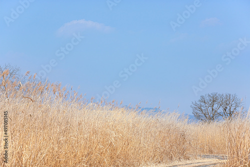 landscape, nature, wetland, blue skies, mountain, japan, sky, meadow, field, plant, winter, blue, tourist attraction, sunny, open air, tour tourism, copy space, showplace, sparkling, vivid, immensity, great, vision, view