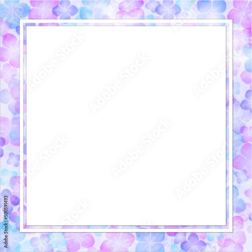 水彩タッチの青紫色のアジサイの花のピクチャーフレーム