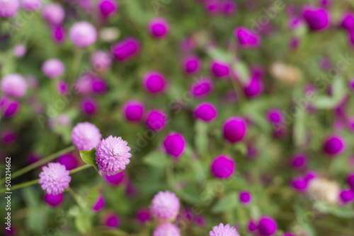濃い赤紫をバックに薄紫の千日紅の花