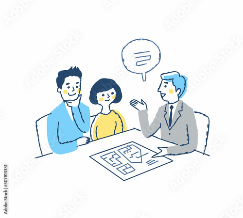 people, business, salesman, version, communication, waist up, table, customer service, speaking, client, client, man, woman, suit, drawing, realtor, couple, housing, architect, idea, illustration, work, japanese, smile, proposal, businessman, salaried employee, young, meeting, corporation, adviser, plan, middle-aged, couple, consultation, planning