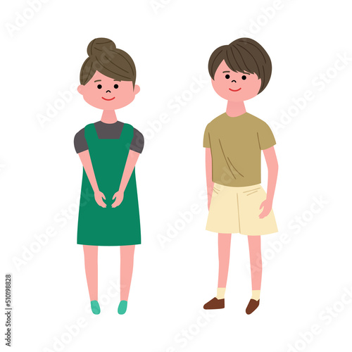 girl, boy, children, japanese, asian, child rearing, front, illustration, vector, sweet, friends, brother, chum, smile