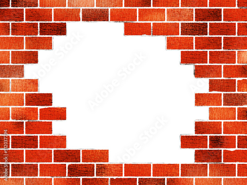 真ん中が崩れた赤茶色のレンガ(ヨコ)
