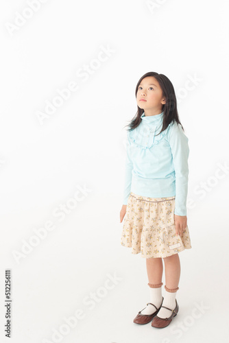 japanese, children, children, girl, training, sweet, contemplate, portrait, earnest, look up, daughter, girl, woman, woman, young, beauty, future, hope, disapproval, moody, unrest, trouble, negative, people, lifestyle, asian, indoor, indoor, white background, cut-out, studio, child rearing