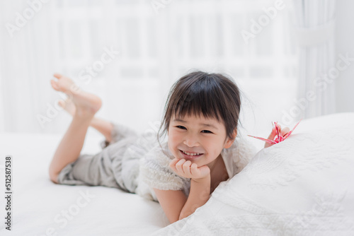 family, child rearing, family, girl, bed, smile, mischief, morning, toddler, kindergartner, sleep, children, children, 4, mischief, model, smile, preschool, vacation, go to bed, pajama, kindergarten, house, asian, japanese, chinese, korean, copy space
