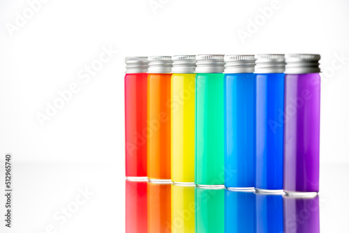 rainbow, rainbow, bottle, colourful, red, orange, green, indigo, blue, purple, nature, macro, indoor, light, white, white background, pretty, vivid
