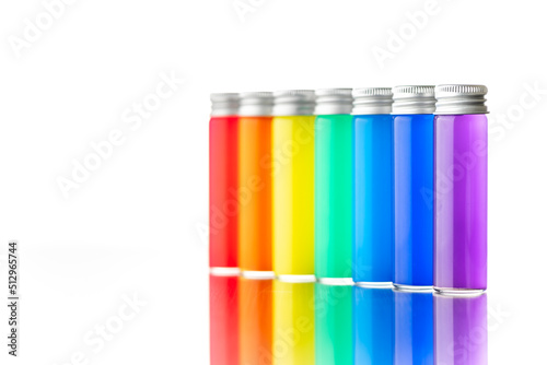 rainbow, rainbow, bottle, colourful, red, orange, green, indigo, blue, purple, nature, macro, indoor, light, white, white background, pretty, vivid
