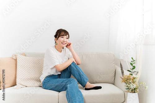 woman, couch, relax, smile, japanese, denim, couch, relax, home, house, underpants, jean, healing, lifestyle, vacation, flower, window, cheek, homemaker, seated, contemplate, drape, natural, life, cushion, portrait, sweet, private, room, girl, copy space, indoor, casual, young, light, 30s, asian, indoor, people