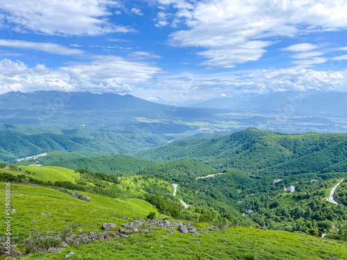 route, way, summer, plateau, meadow, nature, landscape, blue skies, wood, green, copy space, mountain, climb, peak, hill, tourist attraction, tour tourism, hike, trek, stroll, leisure, open air, japan, green, drive