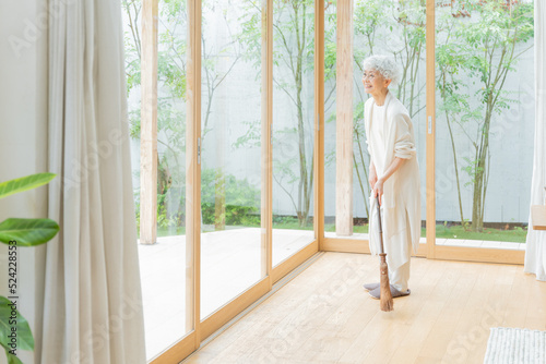 aged, cleaning, cleaning, housekeeping, woman, smile, japanese, asian, 60's, aged, aged, elderly, babushka, house, home, room, indoor, courteous, life, live, lifestyle, besom, rake, clean, homemaker, second life, health, lively, vacation, relax, carefree, calm, minimalist, people