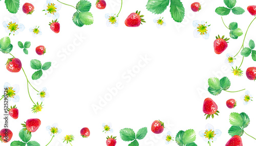 イチゴの水彩イラスト。フレームデザイン(透過背景)