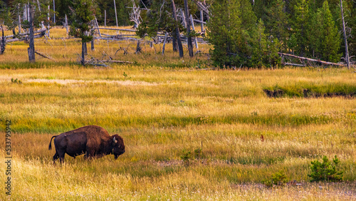 野生のバイソン 秋 アメリカ イエローストーン国立公園