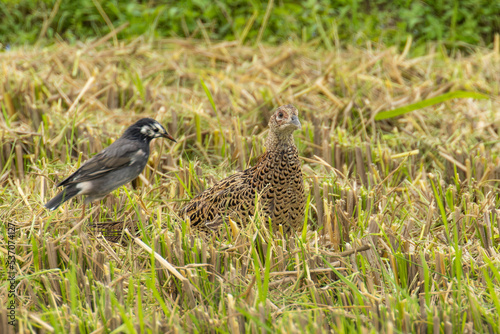 pheasant, bird, fall, lovely, female, field, green, nature, walk, rice field, wing, beak, wildlife, animal, grass, october, open air, unmanned, daytime