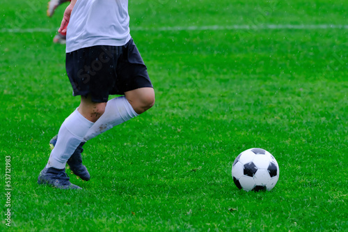 soccer, football, sport, rain, exercise, game, game, grass, run, dribbling, kick, student, person, japan, japanese, asia, ball game, ball, grand, young, foot, man, uniform, open air, soccer field, player, player