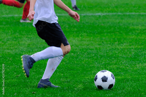 soccer, football, sport, rain, exercise, game, game, grass, run, dribbling, kick, student, person, japan, japanese, asia, ball game, ball, grand, young, foot, man, uniform, open air, soccer field, player, player