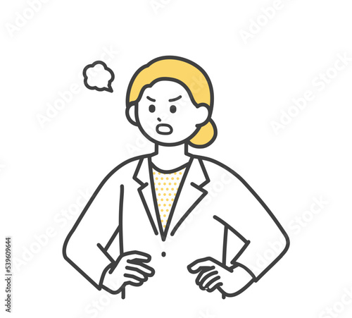 woman, expression, icon, face, medical care, doctor, doctor, labcoat, apothecary, care, hospital, negative, resent, anger, stress, waist up, avatar, people, japanese, illustration, young, light, pretty, material, flat, pop, vector, pose, alone
