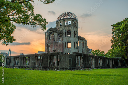 sunset, evening, hiroshima, park, architecture, dome, travel, tour tourism, history, historical building, historic, aged, sky