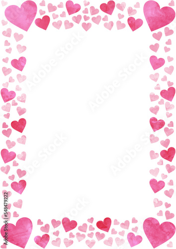 水彩風ピンク色のかわいいハートの長方形フレーム素材