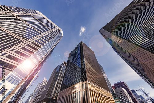 太陽の光が綺麗な東京のビル群