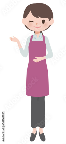 apron, clerk, staff, employee, woman, young, sweet, vector, people, illustration, homemaker, japanese, smile, pose, variation, expression, 30s, coiffure, supermarket, work, sideline, part, shirt, underpants, purple, purple, flat, work, business, welcome, please, uniform