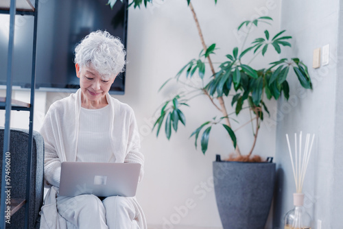 パソコンを使うシニアの女性