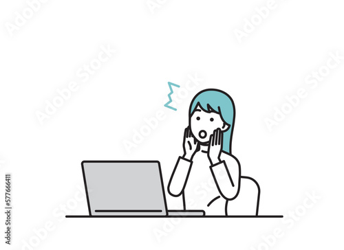 woman, vector, telecommuting, personal computer, personal computer, notebook, meeting, online, desk, table, people, negative, digital, business, net, cyberspace, dress, fashion, avatar, young, youth, 30s, pose, expression, businessman, employee, freelance, shock, flop, accident, anger