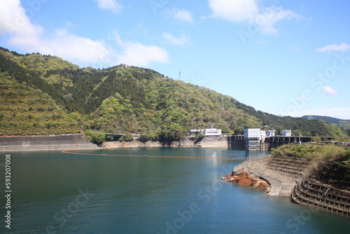 dam, sky, blue skies, tour tourism, landscape, tourist attraction, source, water, lake, water surface, forest, mountain, forest, grove, wood, sunny, weather, kanagawa, outdoors, nature, artificial