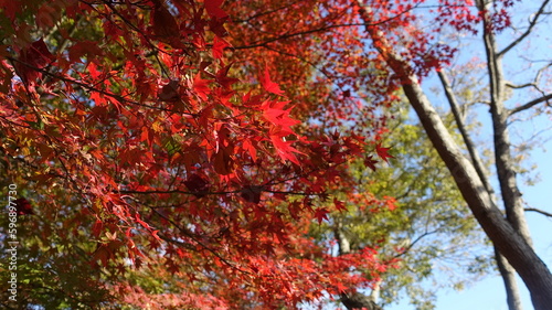 fall, wood, leaf, fall, nature, red, season, forest, yellow, orange, acer, pigmentation, foliage, branch, sky, colourful, park, green, lovely, spring, light, landscape, blue, japan, nara, tour tourism, travel, morning, sunny