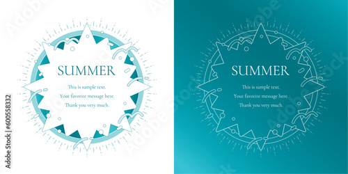 素材_フレームのセット_太陽と海と空をモチーフにした夏の飾り枠。高級感のある囲みのデザイン