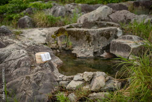 water, stream, nature, flow, sky, pitted, lake, landscape, rock, wood, green, forest, mountain, creek, blue, hot spring, source, bathe, spring, warm, treatment, healing, healing, resuscitation, relax, medical care, view, resort, accommodation, inn, guesthouse, travel, countryside, nature, open, copy space, material, lodging, hot water