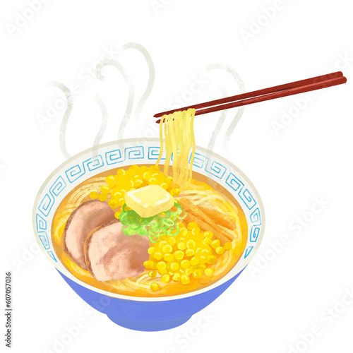 ramen, chopstick, sapporo, butter, hokkaido, chinese, chinese, epicurean, speciality, dish, noodle, soup, bowl, meal, japan, food, delicious, illustration, material, illustration, vapour