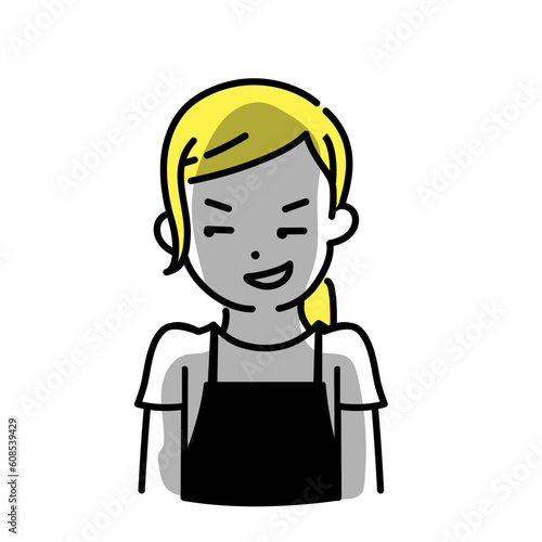 clerk, people, illustration, apron, woman, intrigue, foul, bad guy, shadow, negative, smile, nurse, helper, sideline, cook, work, business, florist, bookseller, expert, shop, eatery, supermarket, coffee, mother, sweet, cartoon, pose, feeling, man, action, design, character, icon, clip art, yellow, graphic, white, black