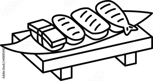 sushi, fish, egg, salmon, tuna, shrimp, handle, seafood, leaf, illustration, food, meal, material, icon, graphic, image, sample, specimen, menu, advertisement, signs, advertisement, receipe, kind, cooking, handwriting, food, vector