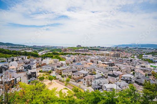 日本の神戸市の小高い丘から神戸の街並みを眺めた写真です。