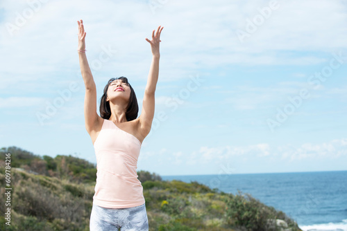 australia, sport, pose, yoga, lifestyle, open air, sea, overseas, health, mountain, nature, woman, people, japanese, healing, green