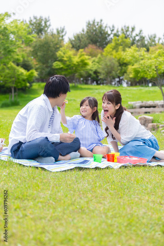 ピクニックをする家族
