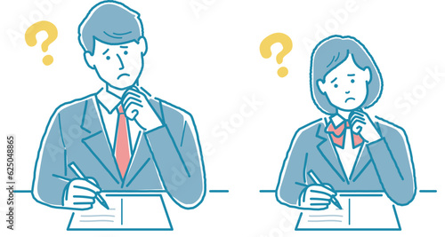 man, woman, people, student, vector, illustration, waist up, contemplate, japanese, young, problem, trouble, training, uniform, school, school, cv, learning, study, difficulty, frustration, student