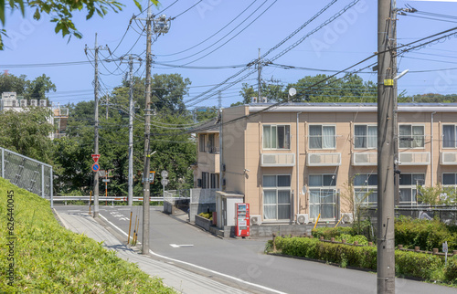 landscape, park, nature, green, wood, open air, sunny, verdure, plant, japan, blue skies, square, green, vivid, season, walk, promenade, stroll, outing, immensity, great, sky, view, route, summer, house, residential area, building, house, residential area, home, way, residence, property, copy space