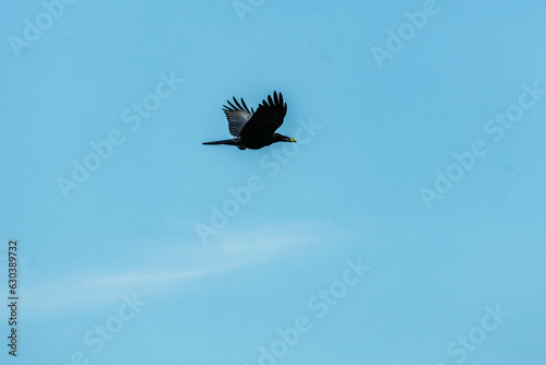 飛行するカラス
