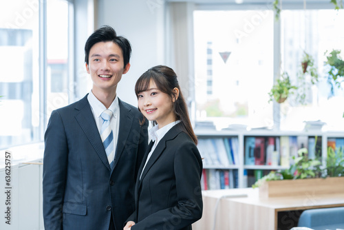 business, businessman, office, newcomer, look up, future, future, hope, man, woman, japanese, asian, young, two people, suit, salaried employee, employee, recruit, intern, fellow, training, salesman, manpower, work, work, office, corporation, dispatch, smile, people